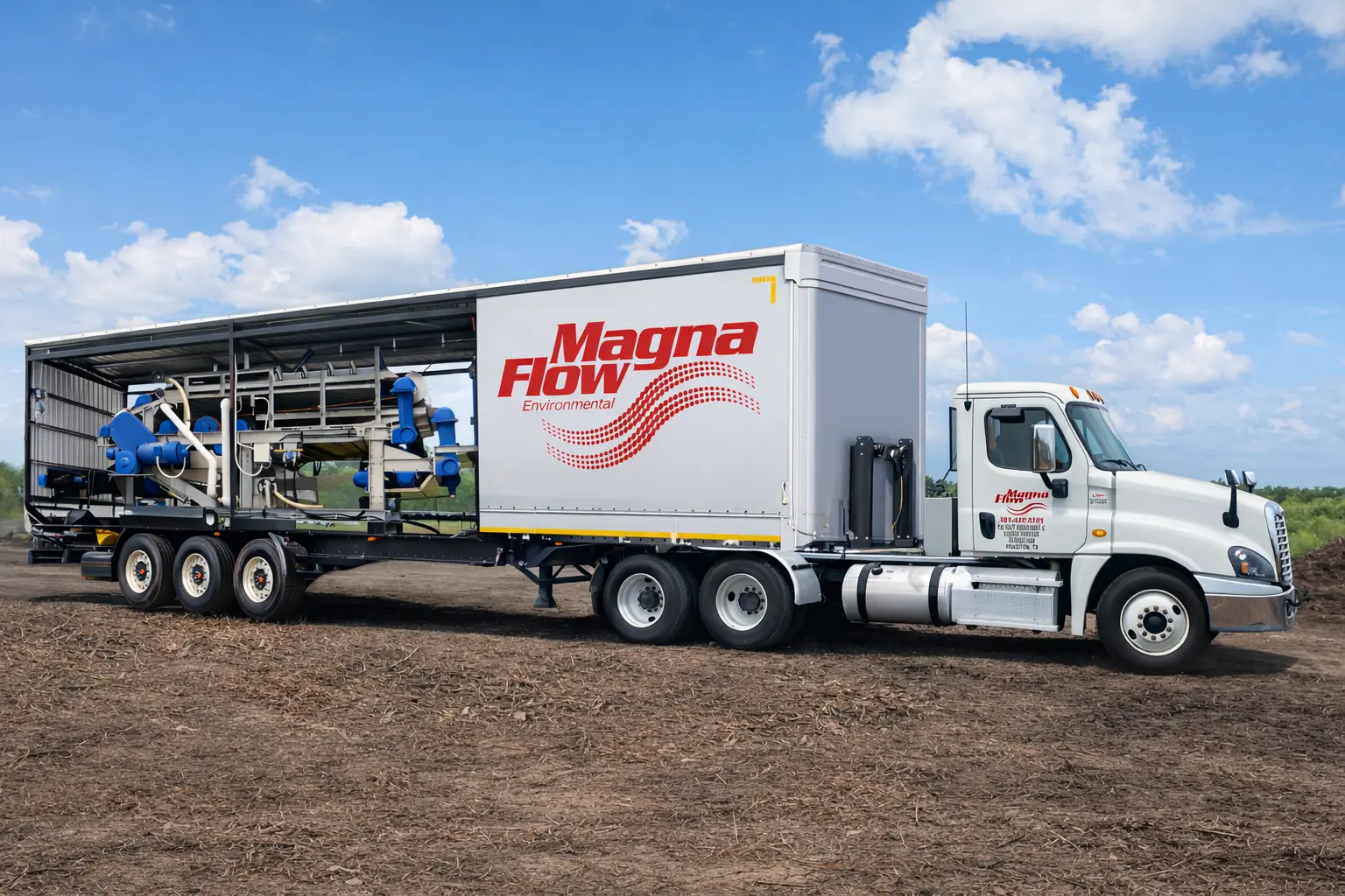 Magna-Flow Environmental provides mobile belt press rental and dewatering support to help facilities reduce hauling volume, improve solids handling, and maintain cleaner workflows during basin cleanouts, solids removal, and routine maintenance.